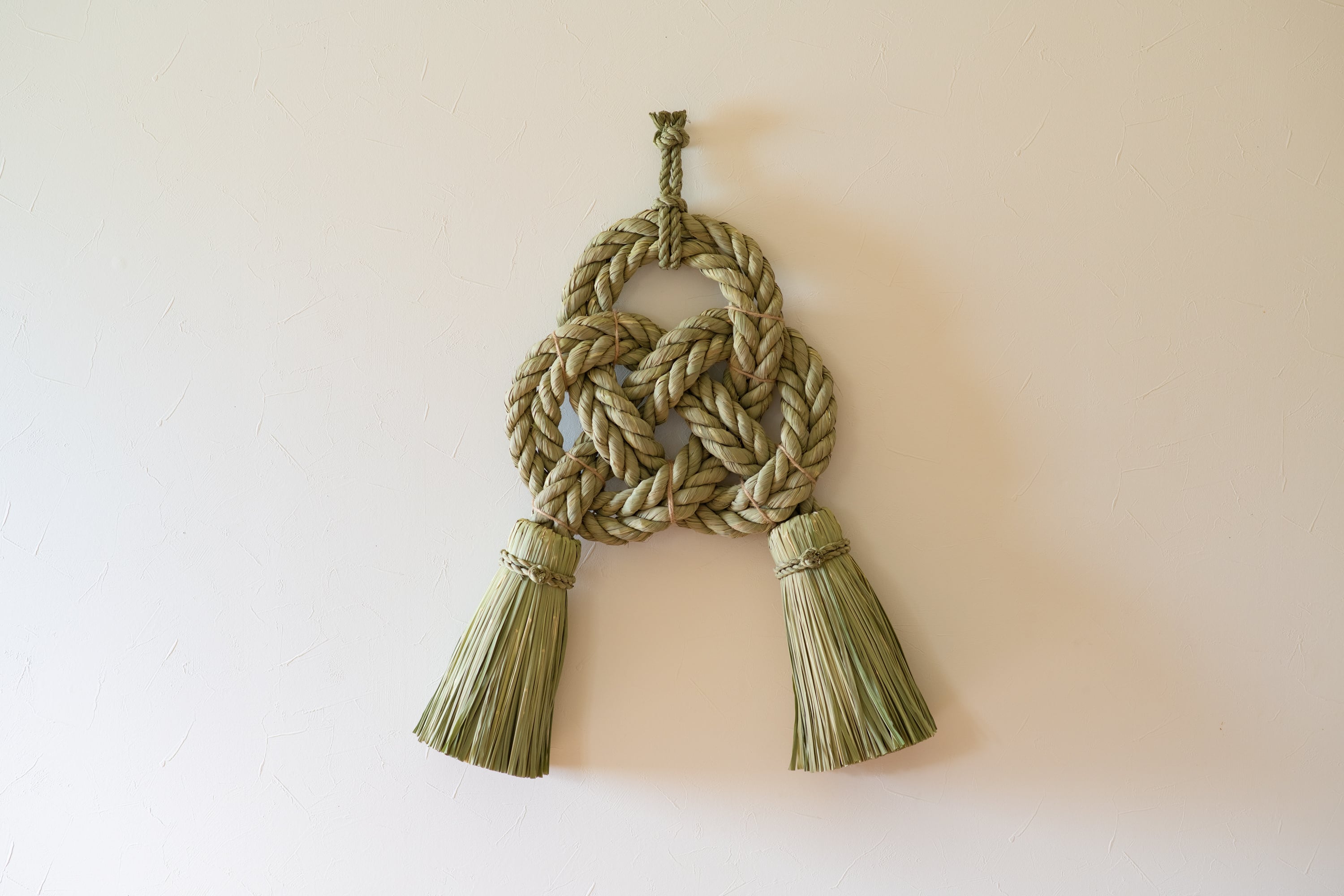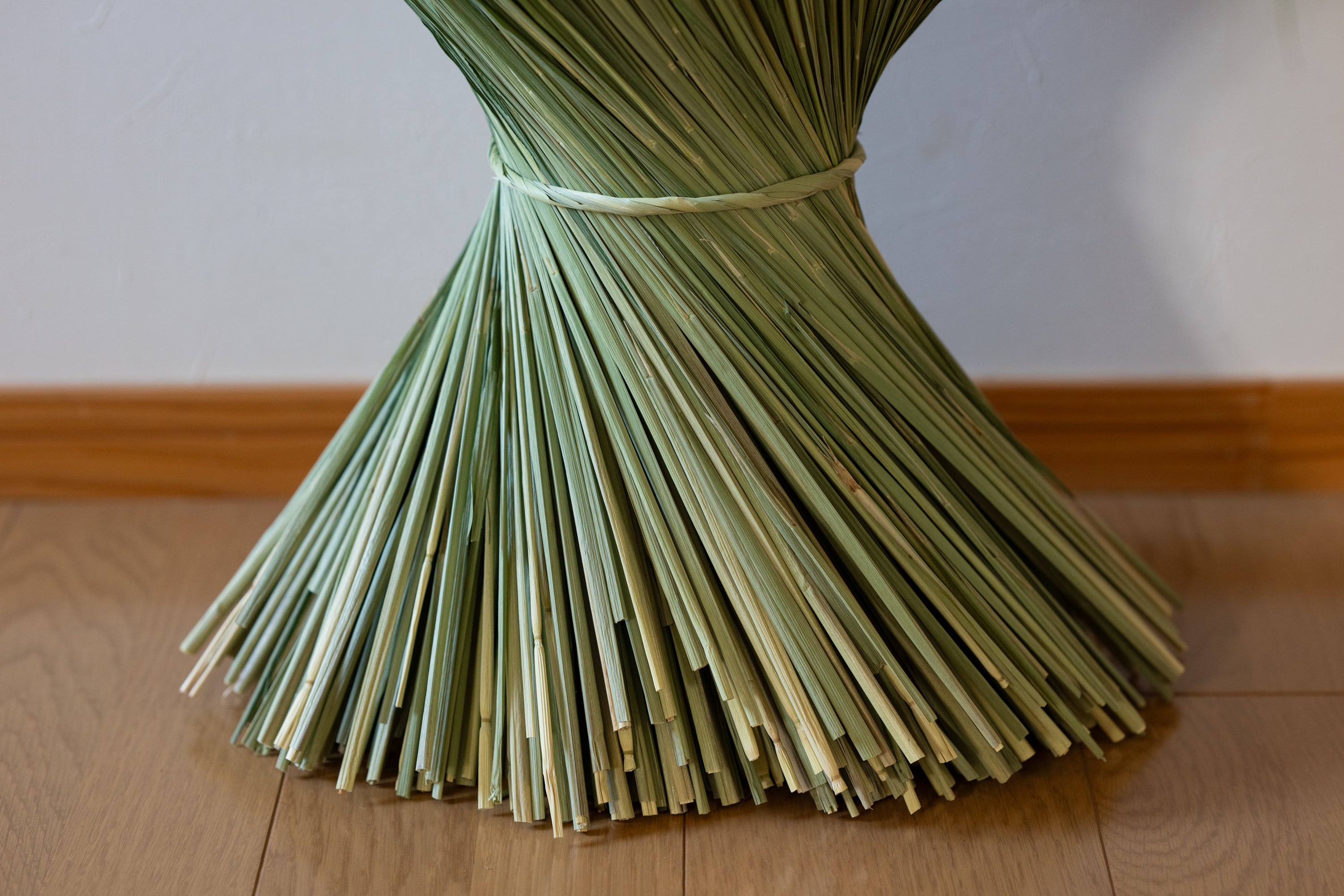 当工房では、祝結び大(写真6枚目)や横綱結び(写真7枚目)など、大型のわら細工制作に実際に使用している材料です。