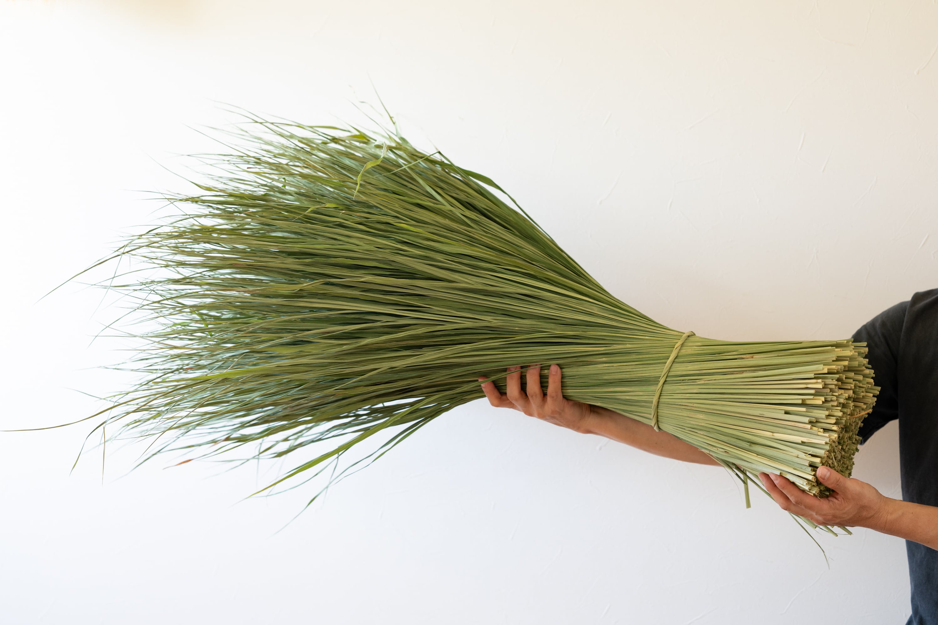 瑞々しい青色と爽やかな香りが特徴の稲わら「青わら」です。