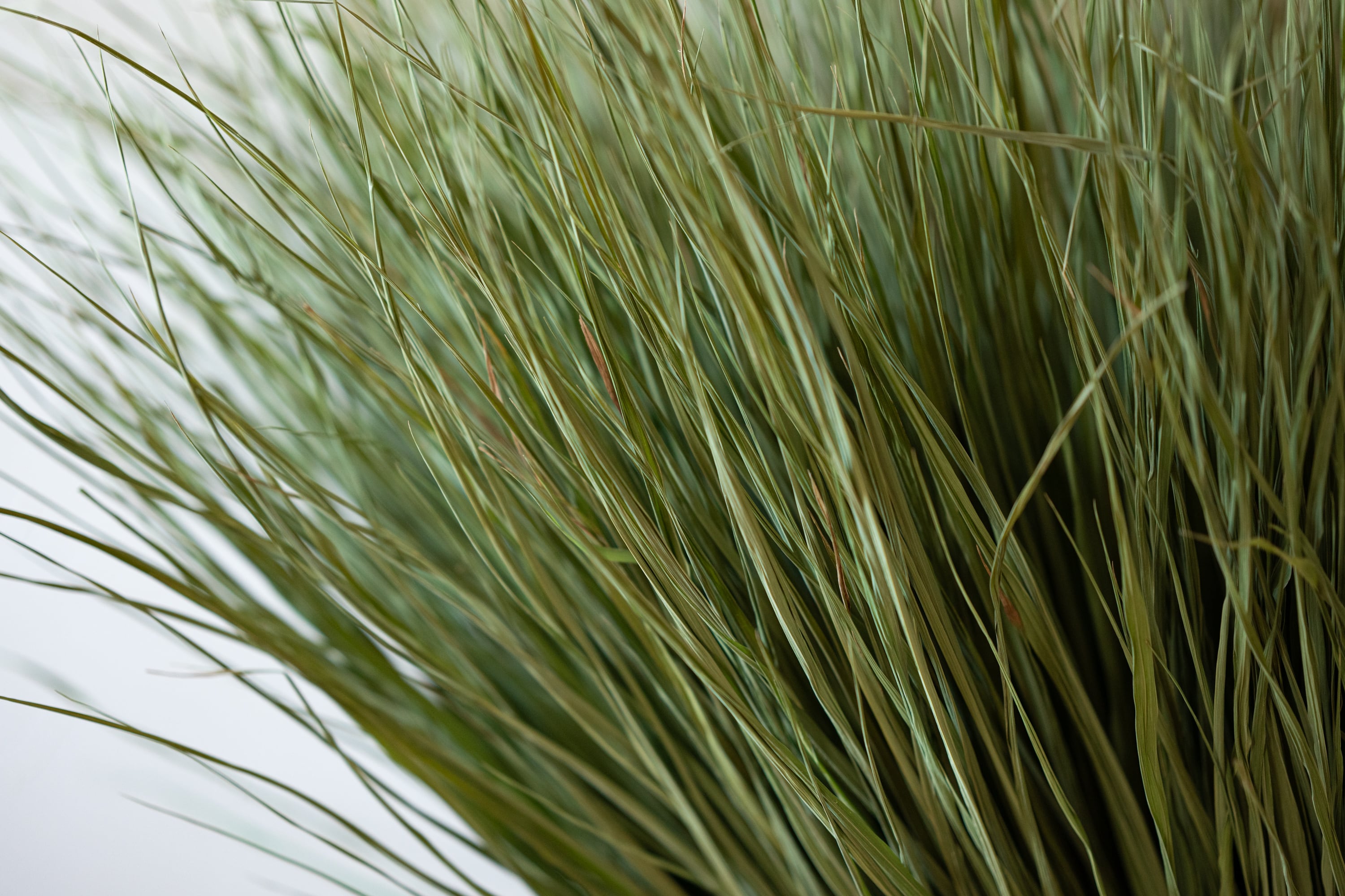 稲わらといえば黄金色のものを想像される方が多いかと思いますが、この青わらは稲穂が実る前の夏季に収穫を行う「青刈り」をしたわらです。収穫後、乾燥機で急速乾燥し、暗所で保管していたため青々しさを保っています。