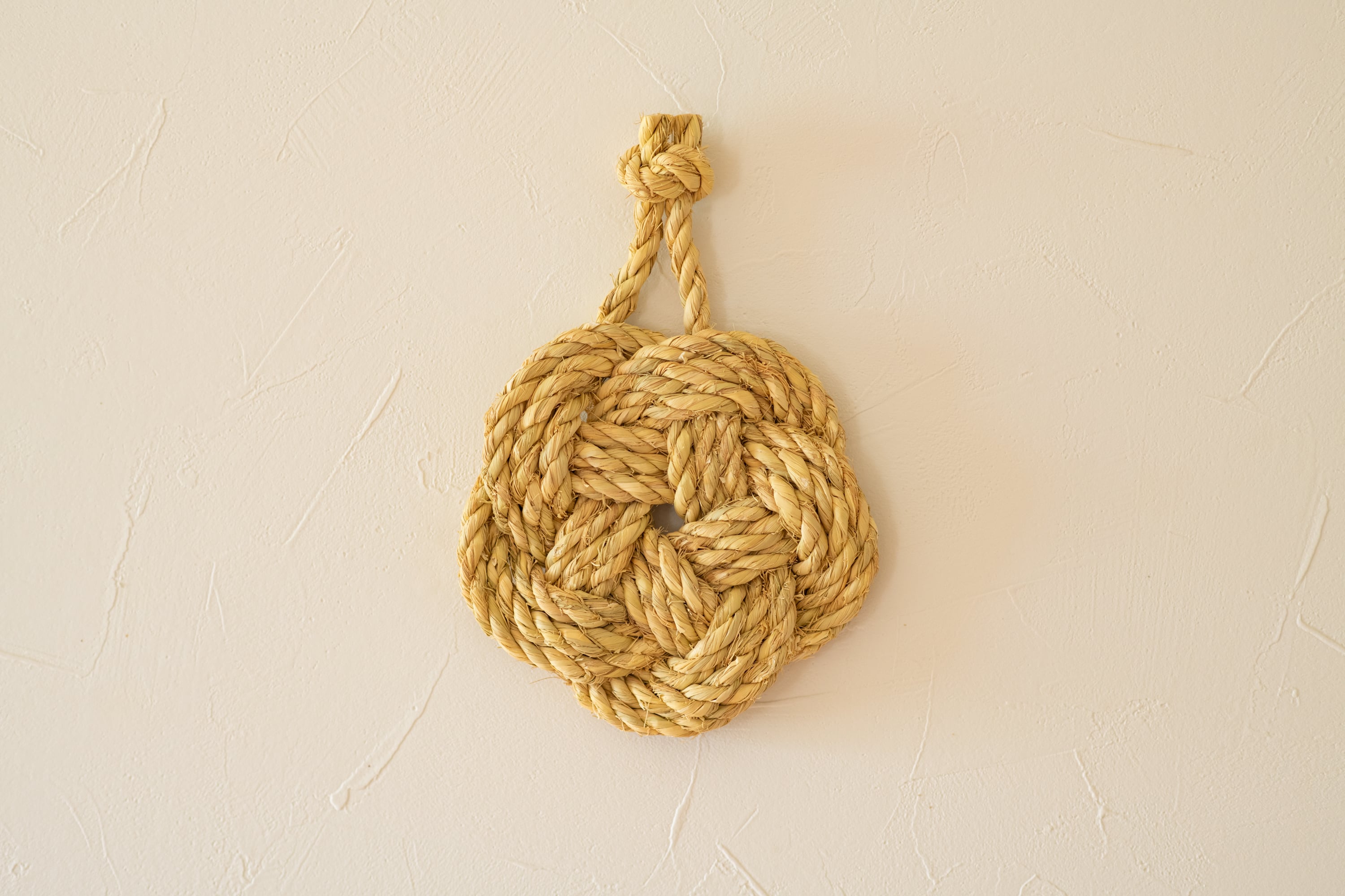 一本の縄を結んでいき、均等な五角形となるよう形作っていきます。